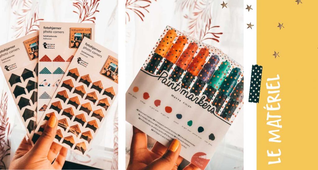 J’utilise aussi des “coins pour photos”, il en existe plusieurs sortes : transparents et discrets ou colorés, métallisés et à motifs ! Si vous aimez créer de belles pages #bujoadddict haha, n’hésitez pas à vous inspirer d’autres albums sur Pinterest ou sur Google !